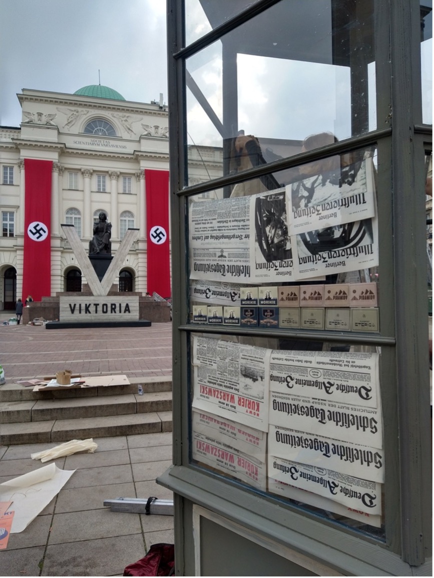 Kalinowska said the Nazi symbols could only be hung at Staszic Palace and its immediate surroundings on the day of filming from 8 a.m. to 6 p.m. on October 15, 2022 and permission had been given to place film decorations referring to the WWII period on the Palace facade and shoot film in the building’s arcades.