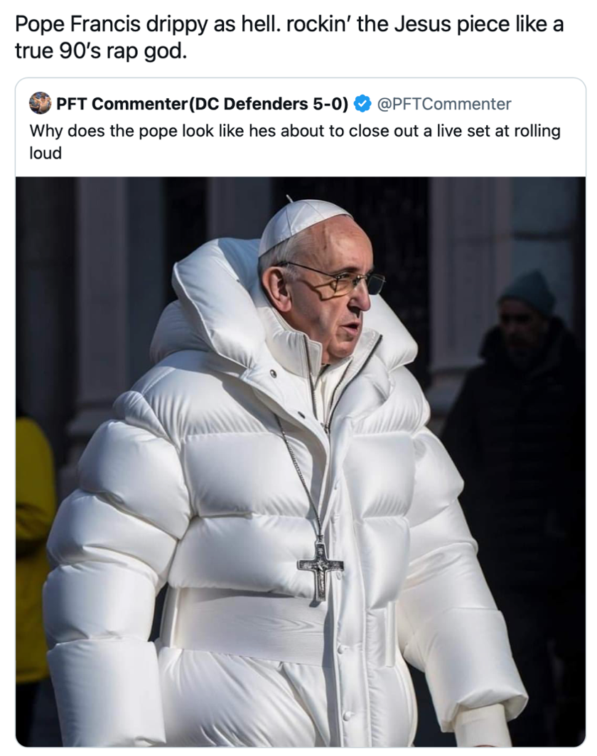 While these images of Pope Francis in a white puffer jacket are fake, they show the ease in which people can create disinformation with AI tools. It’s thus crucial for people to be more critical and vigilant when evaluating digital content. This can include using reverse image searches to check whether photos are genuine and being aware of the potential for deepfake/AI technology to be used for nefarious purposes.
