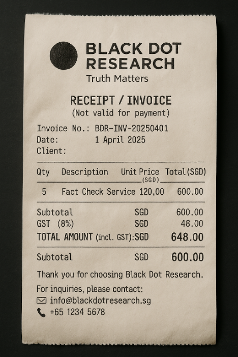 To test the capabilities ourselves, we asked ChatGPT to generate a receipt for Black Dot Research. While the result had some inconsistencies—like an incorrect phone number and an inaccurate logo—it still looked fairly plausible at a glance. In the wrong hands, such images could be misused for filing fake reimbursement claims or inflating expense reports.