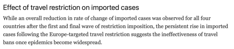 As such, it is currently unproven that travel bans and border restrictions will be effective in controlling the spread of new Covid-19 variants. Based on pre-existing research however, if travel restrictions were to be implemented, the best time to introduce them would be in the early outbreak phase.