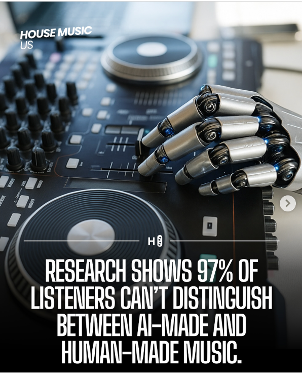 A post on Instagram claims that research shows that 97% of listeners can’t distinguish between AI and human-made music.