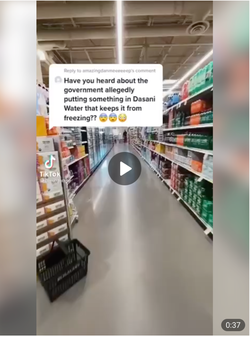 According to the author, there is a theory going around that the government has tampered with Dasani water, with the water unable to freeze due to the addition of this mysterious “ingredient”. In the video, a person is shown purchasing a bottle of Dasani water and a bottle of Kirkland branded water, then putting them both in the freezer. After 8 hours, it shows that the Kirkland water had frozen, however the Dasani water remained liquid.