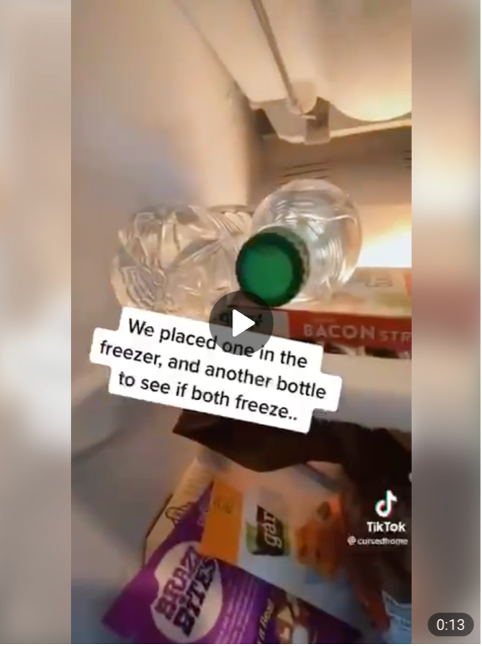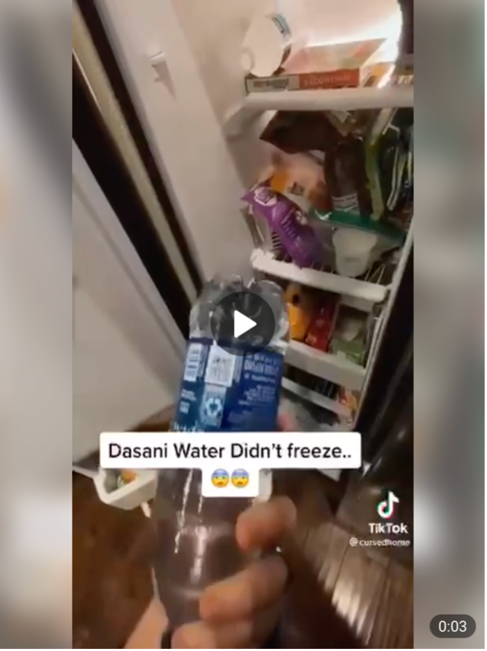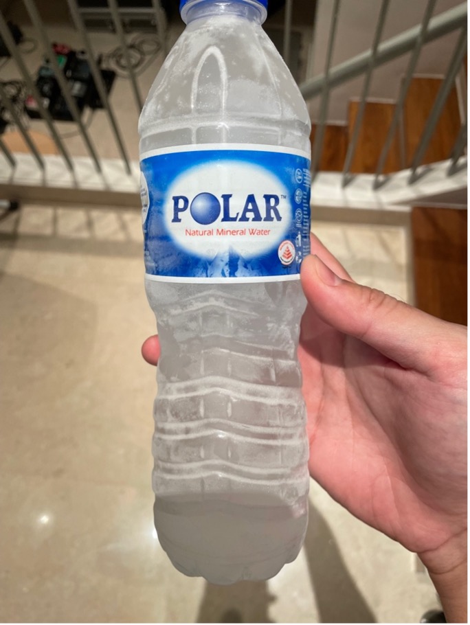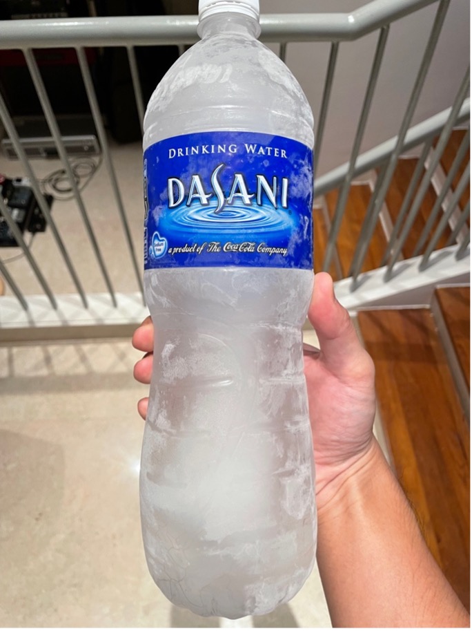 Due to the lack of information present from the video found on Telegram, we decided to conduct an experiment of our own, using Polar and Dasani bottled water and leaving them in the freezer to determine if Dasani water would not freeze. After leaving the water in the freezer for a period of time, we found that both bottles had frozen, with the Dasani having been frozen to a greater extent than the bottle of Polar.