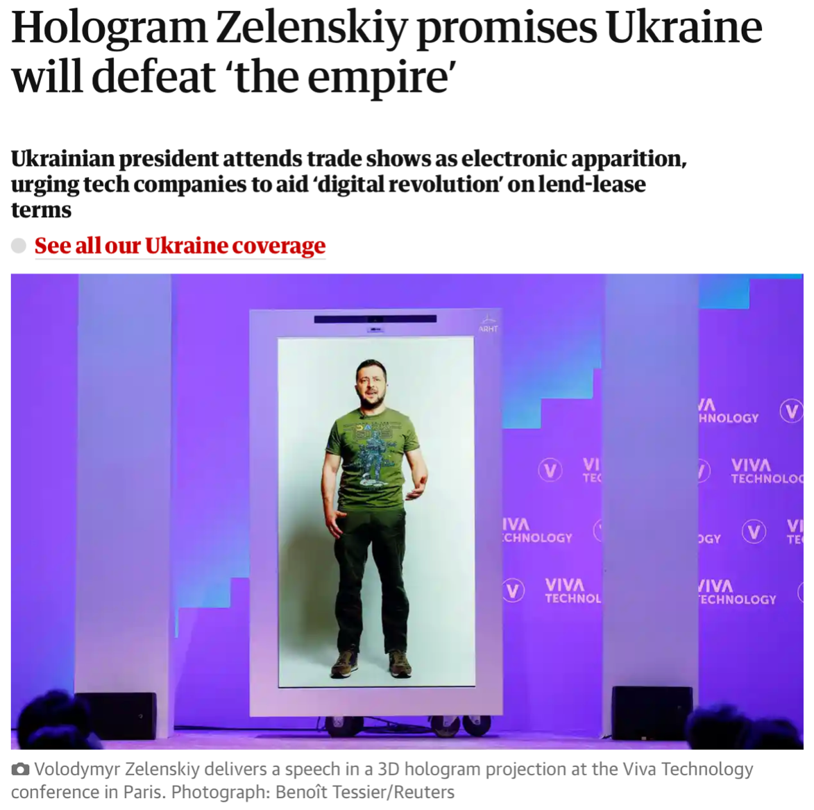 When we conducted a reverse image search however, we found that the images appeared in several articles about the Ukrainian president’s simultaneous appearance via 3D hologram at a number of tech conferences in June 2022.
