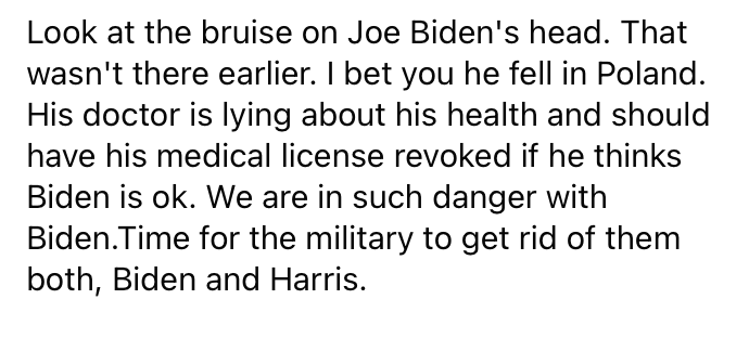 Several posts on social media claimed that US President Joe Biden had a visible bruise on his forehead during his visit to Warsaw, Poland, a day after he made a surprise visit to Ukraine.