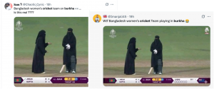 Therefore, we give this claim a rating of false. The Bangladesh Women’s cricket team are playing in the ongoing 2025 Women’s Cricket World Cup but are not clad in burqas. The image has been AI-generated and used to spread misinformation across various social media accounts.