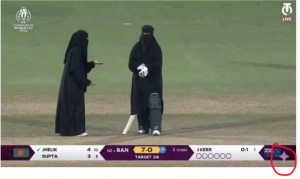 A look at clips from match highlights show a similar scorecard graphics to the claim image. However, unlike the claim image, none of the women playing in the match appear to be wearing burqas at all. The Bangladesh team are instead clad in green uniforms – with some players wearing caps or helmets and some not wearing any headgear.