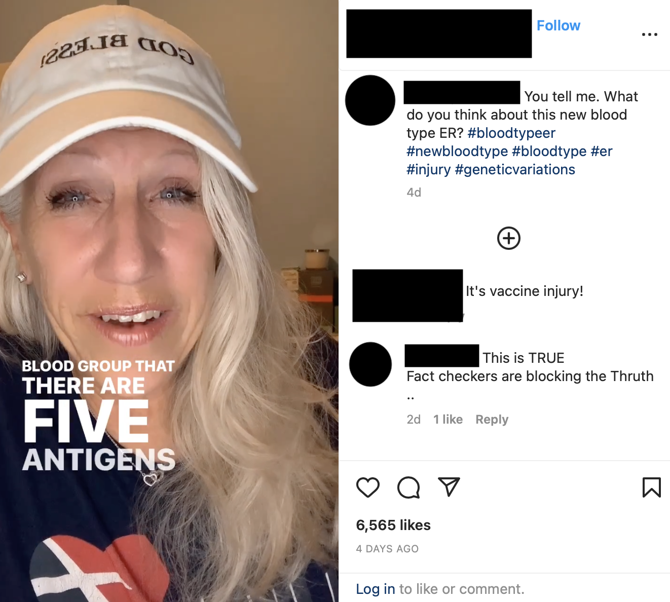 According to the video, the newly discovered blood group, “Er” is proof that mRNA or messenger ribonucleic acid found in the Covid-19 vaccine is changing the DNA in people, leading to the creation of the Er blood group system.