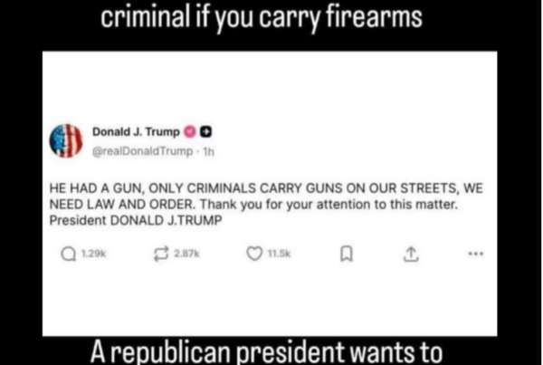 Does this post on Truth Social show Donald Trump condemning gun ownership in the US?
