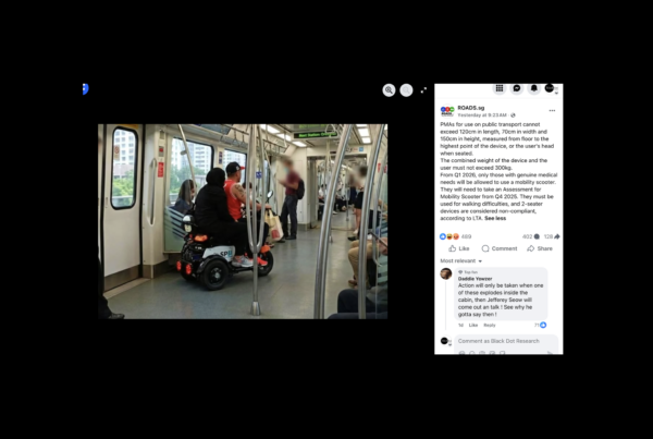 This image has been circulating on social media that purportedly shows a large, two-seater Personal Mobility Aid (PMA) on a local MRT train in Singapore. In the image, two individuals…