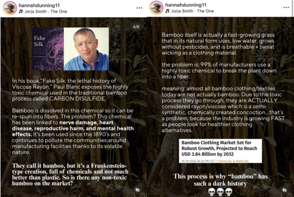 A viral Instagram post with over 14,000 reposts claims that bamboo fabric is not eco-friendly and may even be harmful to the environment:  The images argue that while bamboo “in…