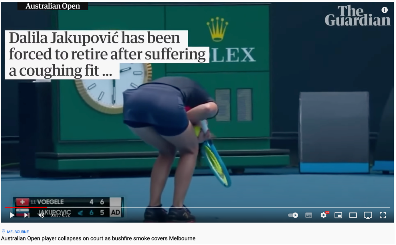 According to the caption on the video posted by The Guardian, the collapse was attributed to the poor air quality in Melbourne, caused by surrounding bushfires. These bushfires were widespread, having burned over 17 million hectares of land and lasted from September 2019 to March 2020.